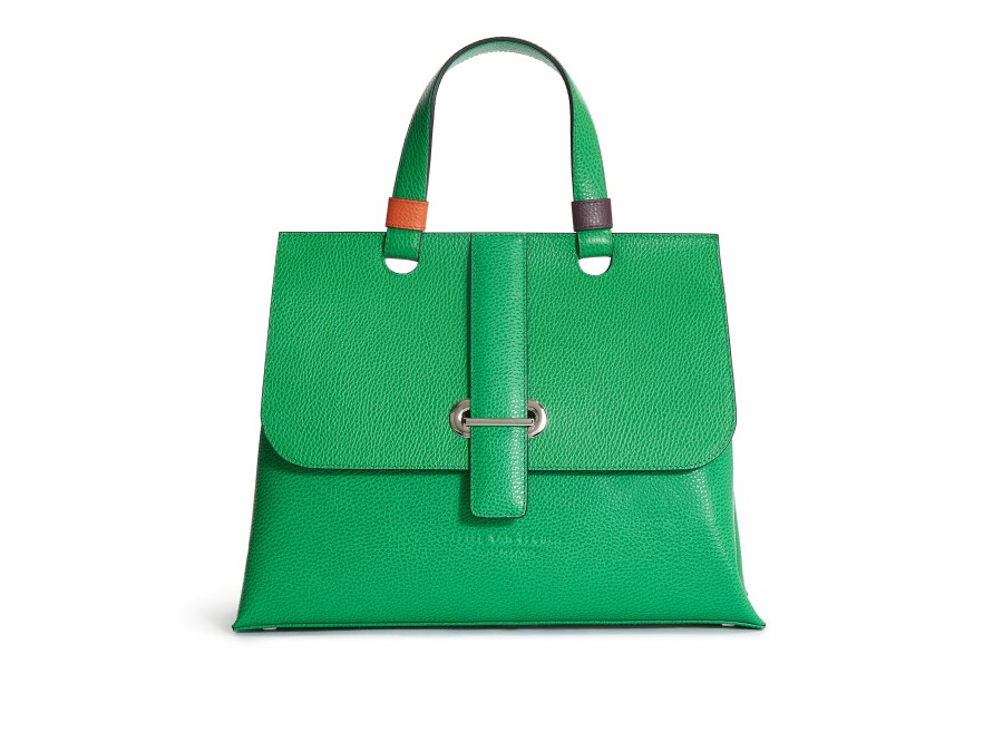 With a wink to the Kelly bag, this grain-leather piece has a classic appearance, although with a modern twist. A bag to be carried by hand as well as on a strap, meant to house your daily miscellaneous items. It has two large compartments inside, separated by a zip.