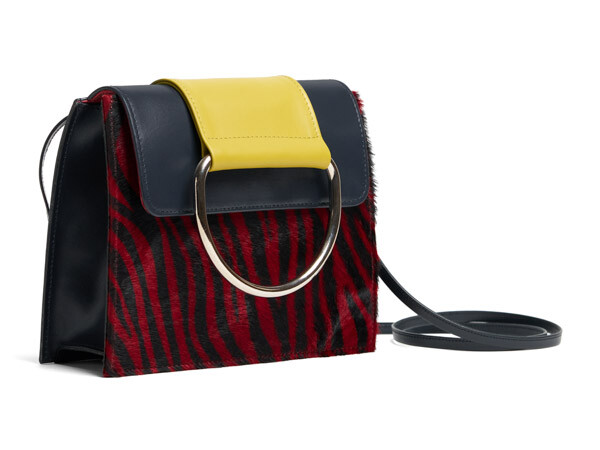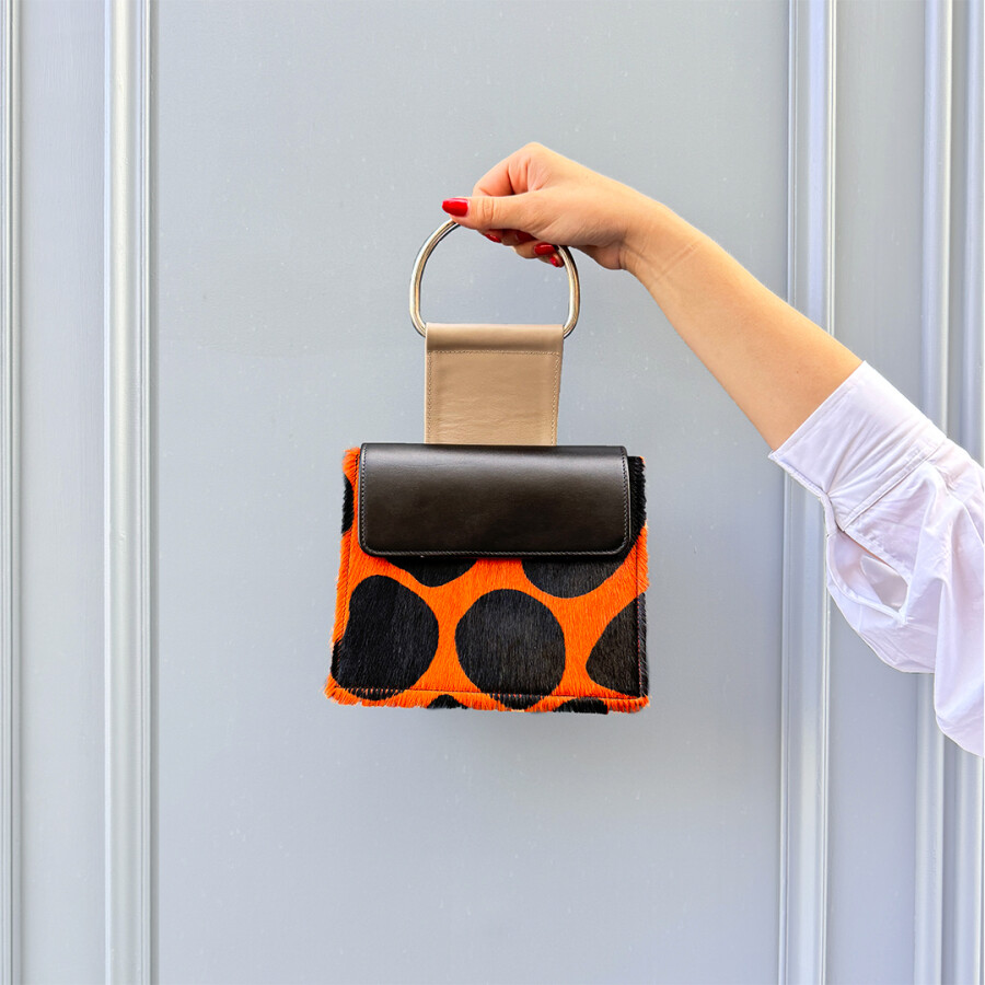 This bag has a remarkable metal handle, which can cover the lock of the bag or function as an extended grip. This graceful purse fits a phone, sunglasses and a wallet! One big compartment, one small zip compartment. Like most of our bags, it has a shoulder strap that can be hidden inside. It is produced in three colors calfskin, lined with leather.