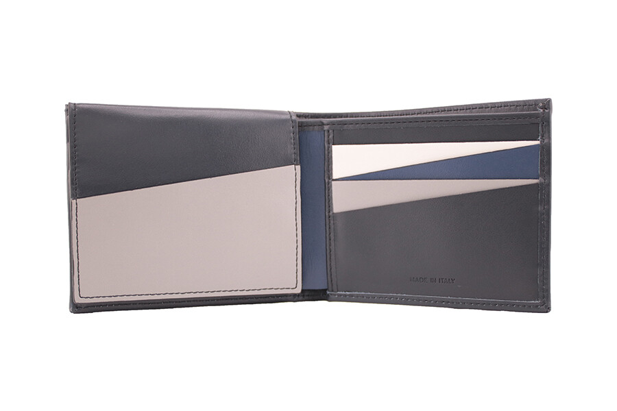 The triple card holder wallet is part of the diagonal series, designed for people who wish to remain neutral on the outside but yearn for a dynamic inner life with elements of surprise. Each compartment is distinguished by another colour.