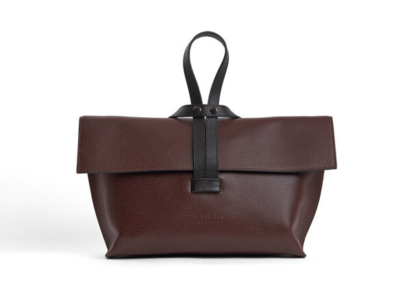 A boat that has been sailing the Nile for centuries led to the creation of this embossed calf leather bag which can be closed by pulling the mast. The flap evokes the dynamics of a sail. The bag can be folded open by lifting the flap to reveal a polka-dot cotton interior. In certain aspects the bag is markedly 1950s era, although the graphic shape is unmistakably 21st century. Can be worn on the wrist or with its shoulder strap.