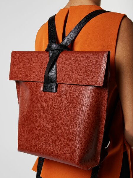 A boat that has been sailing the Nile for centuries led to the creation of this embossed calf leather bag which can be closed by pulling the mast. The Bax model is a unique backpack. The flap evokes the dynamics of a sail, the bag opens by lifting the flap to reveal a spacious cotton interior. Certain aspects of the bag are markedly 1950s era, although the graphic shape is unmistakably 21st century.