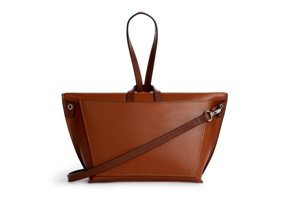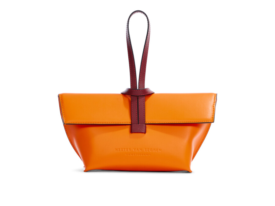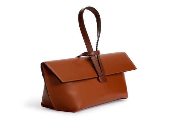 A boat that has been sailing the Nile for centuries led to the creation of this calf leather bag which can be closed by pulling the mast. The flap evokes the dynamics of a sail. The bag can be folded open by lifting the flap to reveal a leather interior. In certain aspects the bag is markedly 1950s era, although the graphic shape is unmistakably 21st century. This little sister of the bigger sized Felucca and Felucca Bax can be worn on the wrist or with its shoulder strap. It has a quick access pocket on the back, a pocket underneath the flap and a pocket on the inside.