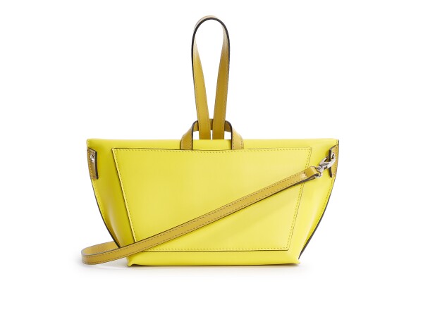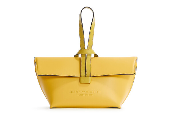 A boat that has been sailing the Nile for centuries led to the creation of this calf leather bag which can be closed by pulling the mast. The flap evokes the dynamics of a sail. The bag can be folded open by lifting the flap to reveal a leather interior. In certain aspects the bag is markedly 1950s era, although the graphic shape is unmistakably 21st century. This little sister of the bigger sized Felucca and Felucca Bax can be worn on the wrist or with its shoulder strap. It has a quick access pocket on the back, a pocket underneath the flap and a pocket on the inside.