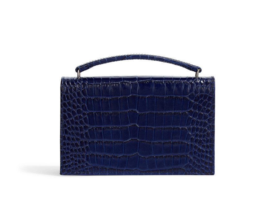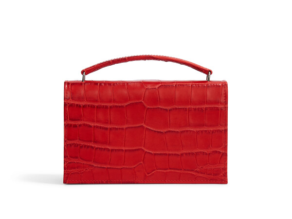 This compact rectangular mini-bag has been designed to provide space for a phone, credit cards, coins and bills, keys, and lipstick. An accompanying streamlined strap transforms it into an evening bag when one has to go out unexpectedly.