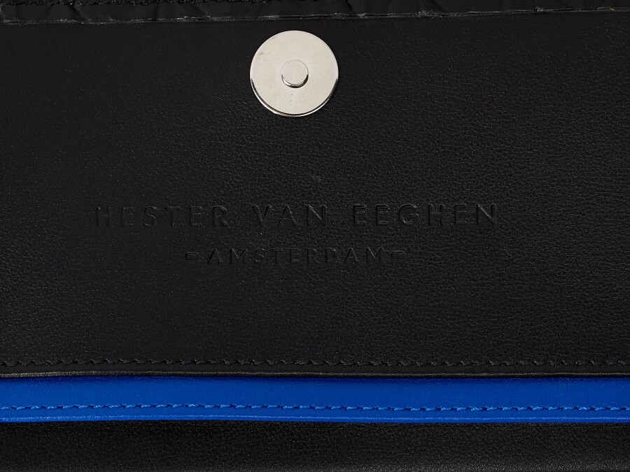 With a uniquely facetted embossed leather exterior, this compact mini-bag is designed to provide space for a phone, credit cards, coins and bills, keys, and a lipstick. The textured leather surface catches the light and glows gently like polished stone. Includes a streamlined strap to wear the Fishy Hadid as an evening bag.