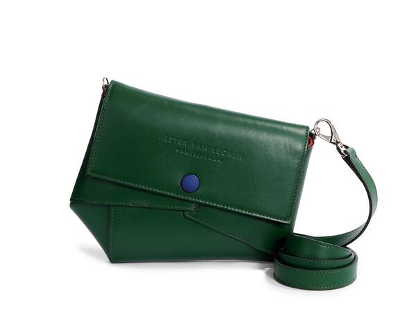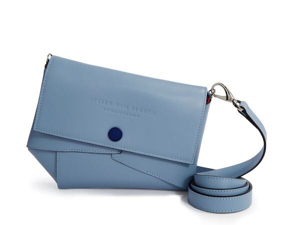 The bag can be worn over the shoulder, but also as a waist bag. Therefore it has two small leather loops on the back, through which you can weave the strap. The main compartment closes with a button, and on the inside there is a zip pocket.