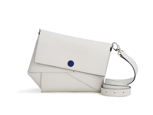 The shape recalls the mawashi loin-cloth of the Japanese sumo wrestler. The main body of the bag, with its various leather petals was folded like origami from a single piece, over a custom wooden mold.