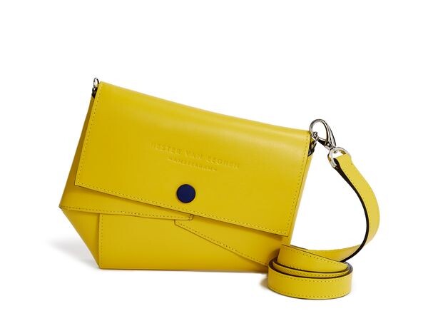 The shape recalls the mawashi loin-cloth of the Japanese sumo wrestler. The main body of the bag, with its various leather petals was folded like origami from a single piece, over a custom wooden mold.