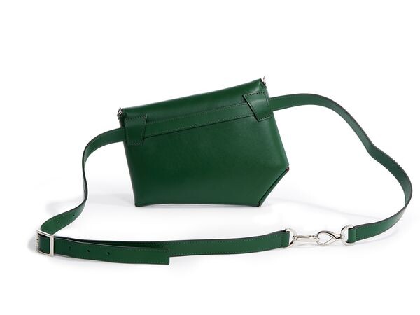 The bag can be worn over the shoulder, but also as a waist bag. Therefore it has two small leather loops on the back, through which you can weave the strap. The main compartment closes with a button, and on the inside there is a zip pocket.
