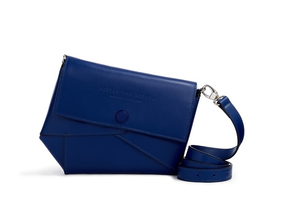 The shape recalls the mawashi loin-cloth of the Japanese sumo wrestler. The main body of the bag, with its various leather petals was folded like origami from a single piece, over a custom wooden mold.