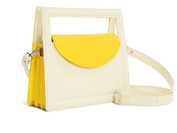 An elegant bag inspired by the shape of the vintage transistor radio that Hester’s father would carry around
