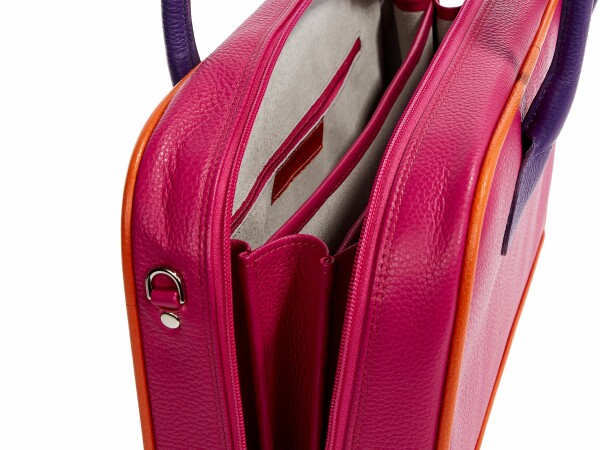 four spacious compartments to accommodate a laptop, folders, some Dostoyevsky perhaps. Includes a