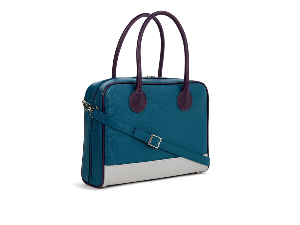 Remember the anti-bag? A drab vinyl carryall, faded and worn from years of use and abuse. This ultra-functional bag pays tribute to the type of anti-hero often seen in Woody Allen movies. It has a brightly coloured lining and four spacious compartments to accommodate a laptop, folders, some Dostoyevsky perhaps. Many compartments and includes a detachable shoulder strap. The Plus version is lined with pigskin.